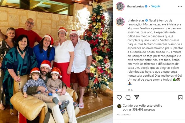 Este foi o primeiro Natal que Thales Bretas passou após a morte do marido, Paulo Gustavo e pelo seu desabafo nas redes sociais foi possível ver que não está sendo fácil. O dermatologista ficou com os filhos e a família, mas foi impossível não comentar sobre a ausência do autor, que morreu este ano.