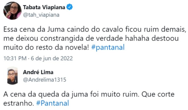A cena de Juma caindo do cavalo e sendo socorrida por Zé Lucas na noite desta última segunda-feira (06), na novela Pantanal, não convenceu o público e a Globo foi duramente criticada nas redes sociais.
