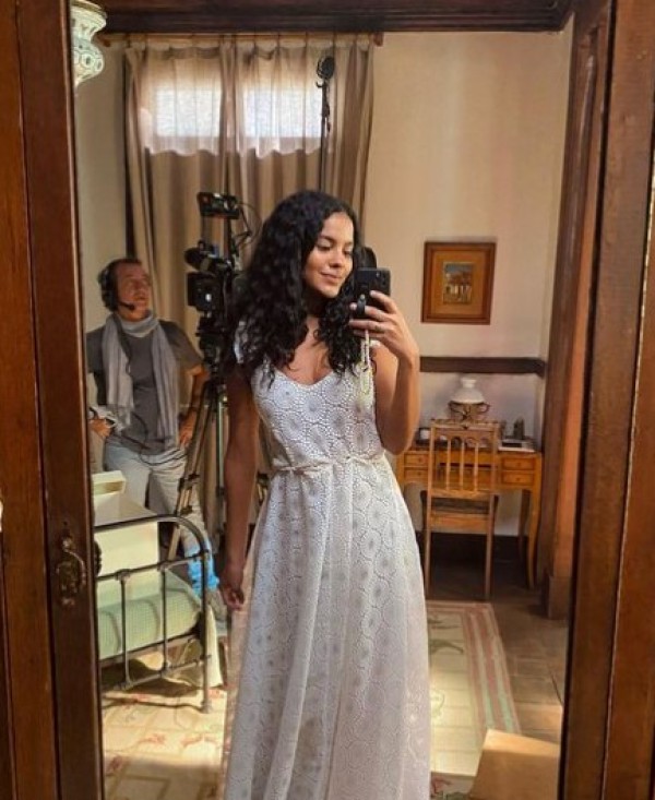 Ao postar a foto em seu perfil no Instagram, Bella Campos escreveu na legenda: “Será que a Muda vai casar? Meu primeiro trabalho no audiovisual há alguns anos atrás foi no papel de uma noiva, era um comercial de alguns segundos, onde pude sentir a magia de estar na frente das câmeras, foi ali que decidi que queria trabalhar com isso”.