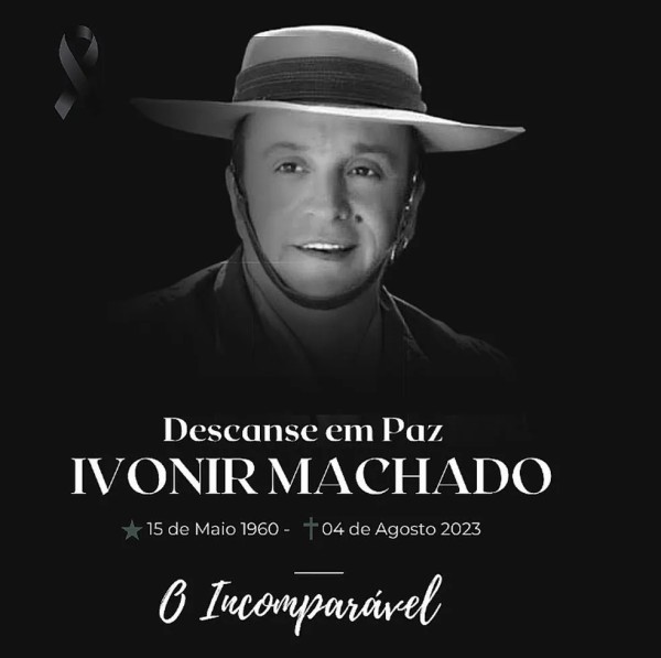 A família do cantor Ivonir Machado usou o perfil dele no Instagram para dar uma triste notícia aos fãs. Nesta última sexta-feira (04), morreu o artista de 63 anos, mas a causa do falecimento ainda não foi informada.