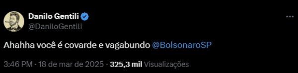 Em suas publicações, o humorista não economizou palavras. “Ahahha você é covarde e vagabundo”, escreveu, marcando diretamente o perfil do parlamentar.