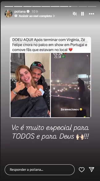 Mesmo excluindo o vídeo, os internautas não deixaram o momento passar em branco, uma vez que Zé Felipe estava chorando no palco, durante sua apresentação. A mãe do cantor, Poliana Rocha, chegou a repostar uma publicação que mostrava o registro feito por Virginia. Ela fez questão de mandar uma mensagem de apoio para o filho nesse momento delicado.