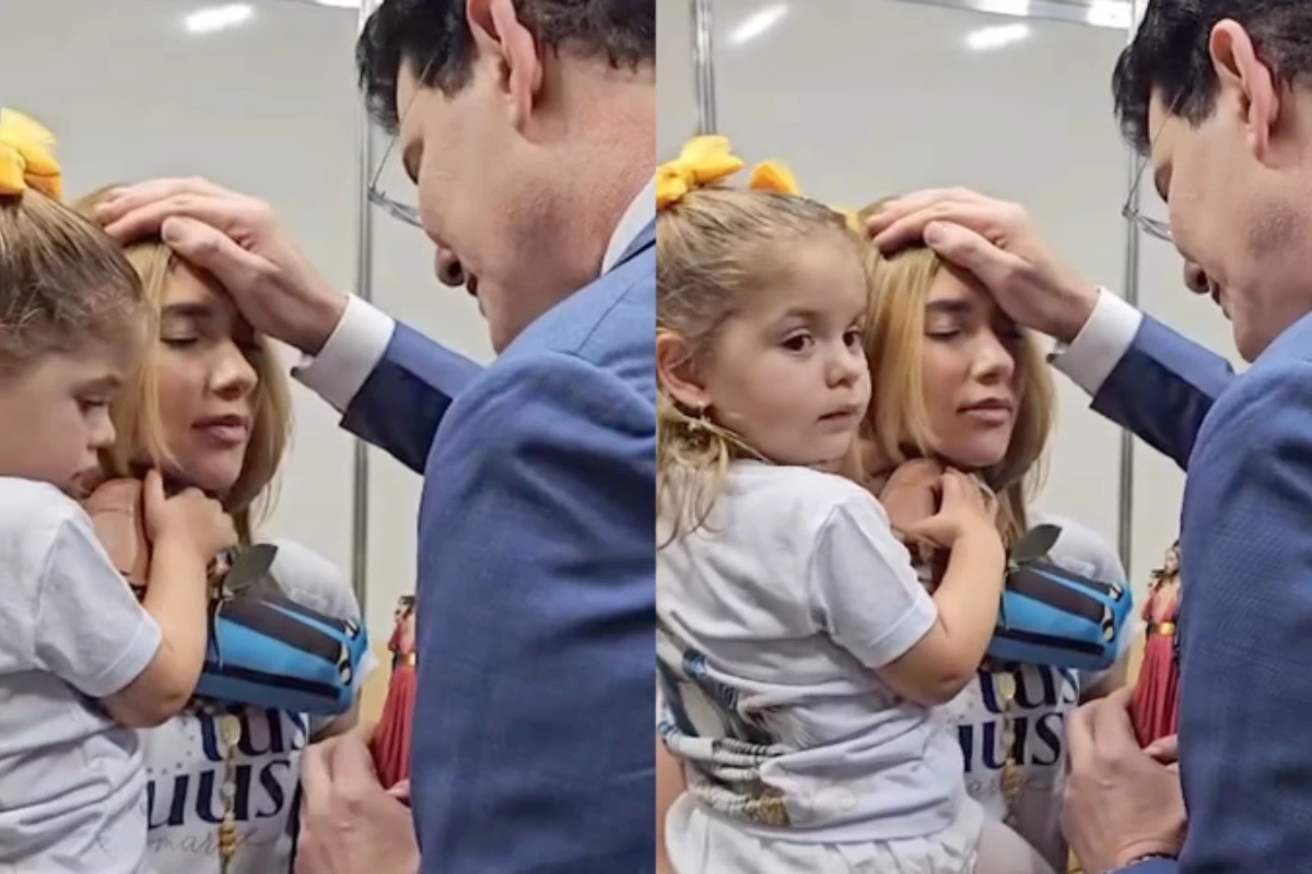 Em um registro compartilhado pelo Padre Reginaldo Manzotti em seu perfil oficial do Instagram, Virgínia apareceu no camarim com sua filha caçula, Flor, no colo, em um encontro emocionante com o sacerdote. “Virginia, que Nossa Senhora das Graças derrame graças abundantes na sua vida e de toda a sua família. Que Jesus das Santas Chagas a proteja e guarde“, disse o religioso.