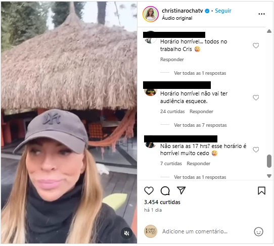 Nas redes sociais, telespectadores criticaram duramente a nova faixa de exibição, considerando o horário inadequado para o perfil do programa. “Horário horrível… todos no trabalho Cris”, opinou um internauta. “Horário horrível não vai ter audiência esquece”, afirmou outro.