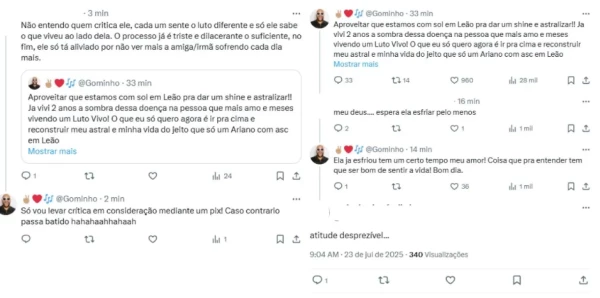 Segundo Gominho, Preta Gil já teria esfriado há um tempo, mas para entender isso, a pessoa tem que ser bom em “sentir a vida”. Outros seguidores saíram em defesa do influenciador, ressaltando que o luto é uma experiência individual.
