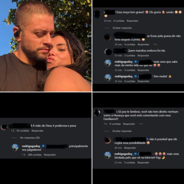 “Essa moça tem grana? Ele gosta… senão”, questionou uma internauta sobre a namorada de Rodrigo Godoy. “Tem muita”, respondeu ele de forma irônica, criticando quem julga sem conhecer a realidade, o que aumentou a repercussão negativa na web. O episódio também reacendeu discussões sobre questões pessoais e o impacto de histórias passadas, como a traição de Rodrigo durante o tratamento de Preta Gil contra o câncer.