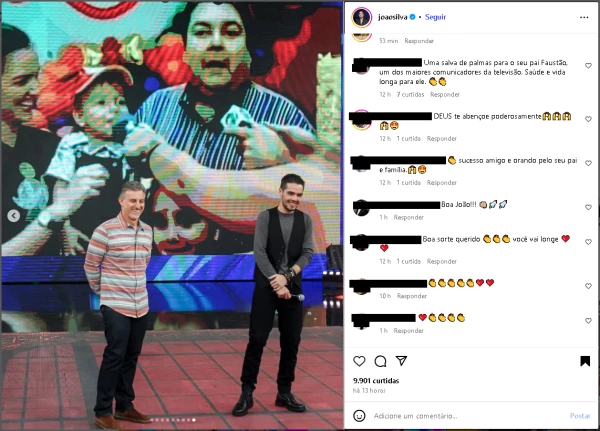 Nos comentários, vários seguidores e amigos deram apoio ao artista, que está vivendo um momento complicado na família. “Uma salva de palmas para o seu pai Faustão, um dos maiores comunicadores da televisão. Saúde e vida longa para ele”, escreveu uma internauta. “Sucesso amigo e orando pelo seu pai e família”, desejou outra pessoa.