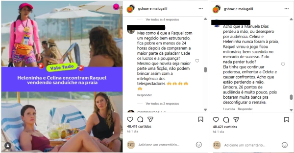 “Acho que a Manuela Dias perdeu a mão, ou desespero por audiência. Celina e Heleninha nunca foram à praia, Raquel virou o jogo ficou milionária, bem sucedida no mercado de sucesso. E do nada perder tudo?”, rebateu outro internauta.