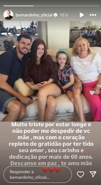 O neto Bruninho também deixou uma homenagem nas redes sociais, ressaltando a importância da avó em sua vida. Ele descreveu a convivência como um privilégio e recordou momentos de viagens, festas e almoços em família.