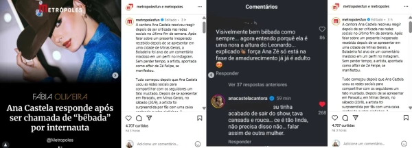 Ana explicou que havia acabado de se apresentar e estava cansada e com a voz rouca, contextualizando a situação. Ela reforçou a postura com uma mensagem de cordialidade, ressaltando que não era necessário falar daquela maneira sobre outra mulher.