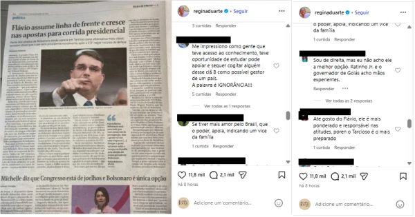 “Me impressiono como gente que teve acesso ao conhecimento, teve oportunidade de estudar pode apoiar e sequer cogitar alguém desse clã B como possível gestor de um país. A palavra é Ignorância!”, afirmou um usuário. “Sou de direita, mas eu não acho ele a melhor opção. Ratinho Jr. e o governador de Goiás acho mais experientes”, opinou outro internauta.