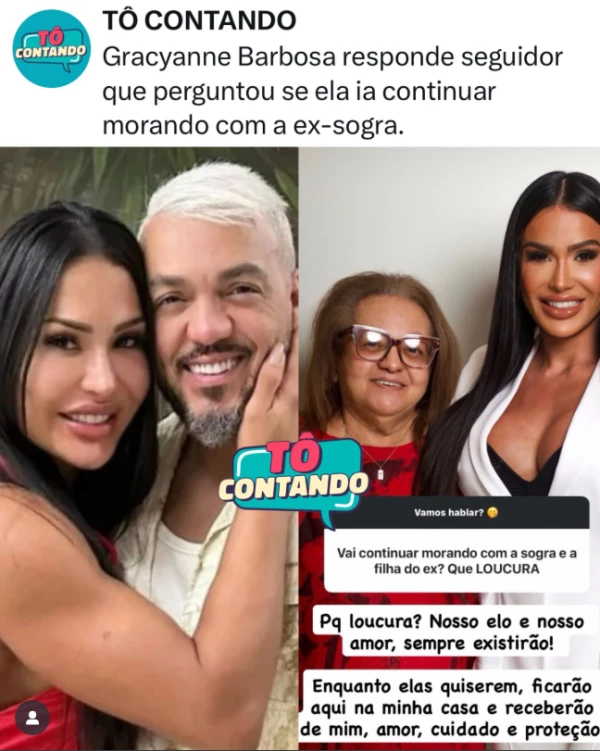 Gracyanne Barbosa utilizou suas plataformas online no domingo, 23 de novembro, para se defender de comentários e críticas. A musa fitness expressou sua opinião de forma incisiva após ser alvo de um questionamento a respeito de continuar residindo com Dona Terezinha, que é a mãe do seu ex-marido, o cantor Belo.