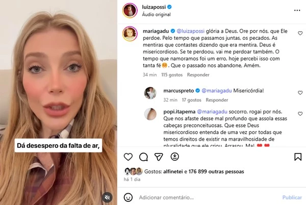Maria Gadú surpreendeu ao comentar a publicação de Luiza Possi afirmando que ela e a cantora tiveram um relacionamento no passado. A artista escreveu uma mensagem carregada de ironia e forte teor crítico ao discurso religioso da ex-companheira. “O tempo que namoramos foi um erro”, escreveu Gadú, dizendo ainda que espera o perdão divino pelos pecados e pelas mentiras relacionadas ao período em que estiveram juntas.