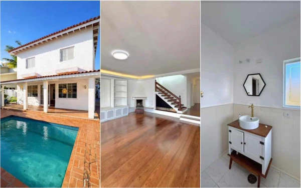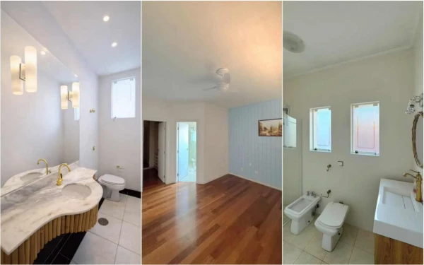 A propriedade conta com uma área total de 417 metros quadrados composta por três suítes equipadas com closet privativo. A suíte principal diferencia-se das demais por oferecer uma banheira de hidromassagem exclusiva para os moradores.