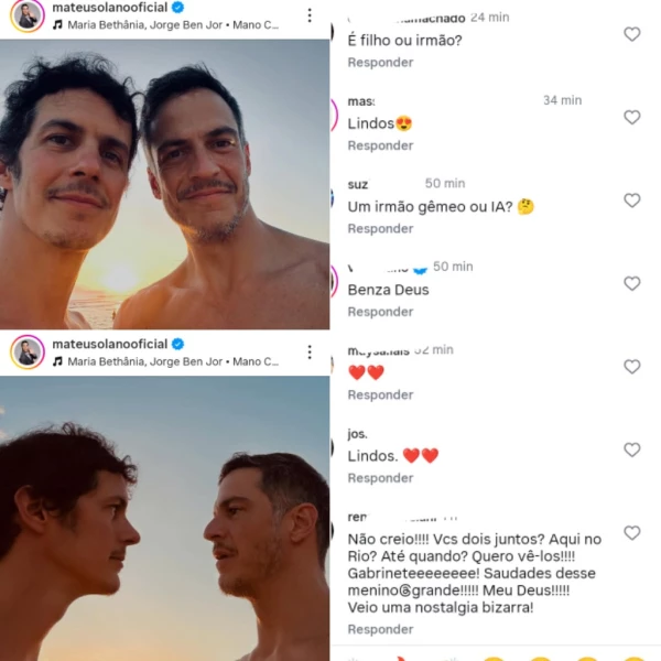 “É filho ou irmão?”, perguntou um seguidor de Mateus Solano ao se deparar com as fotos do ator na companhia de Gabriel. “Nossa, como vocês se parecem. Lindos! Sou muito fã dos dois”, elogiou outra internauta. “Não creio!!!! Vcs dois juntos? Aqui no Rio? Até quando? Quero vêl-los!!!”, comentou uma terceira na publicação que está dando o que falar na web.
