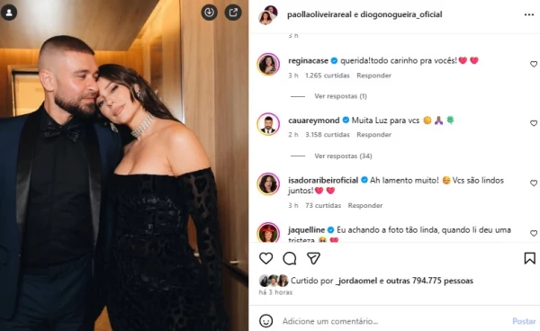 As mensagens de apoio reforçaram o carinho que Paolla e Diogo conquistaram ao longo dos anos. A manifestação de Regina Casé, em especial, ganhou destaque por sua espontaneidade e pelo tom afetuoso. Com o apoio de colegas e seguidores, Paolla Oliveira e Diogo Nogueira encerram uma etapa importante de suas vidas cercados por solidariedade e reconhecimento. A repercussão mostra que, mesmo diante do fim, o casal permanece querido pelo público e pelo meio artístico.