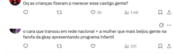Muitos usuários questionaram a adequação desse comportamento para o público alvo do programa do SBT. Algumas postagens no X, antigo Twitter, afirmaram que o casal demonstrou falta de carisma para lidar com crianças.