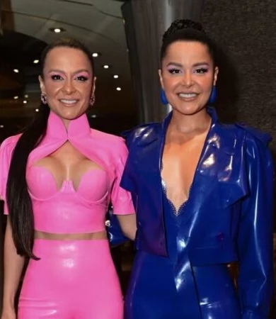 As irmãs sertanejas apostaram em roupas justas, coloridas e com textura brilhante, que remetia ao látex. O visual ousado valorizou a silhueta das cantoras e rapidamente se tornou um dos assuntos mais comentados entre os fãs que acompanhavam os registros do navio.