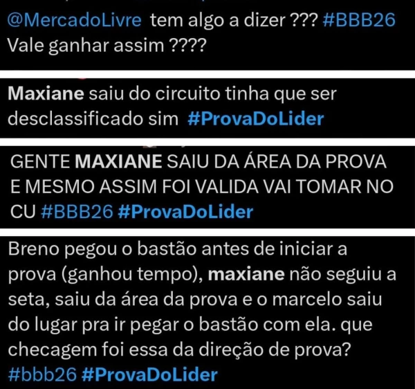 Apesar do resultado oficial, telespectadores apontaram que Maxiane teria saído da área demarcada do circuito durante a prova, o que, segundo eles, configuraria uma infração clara das regras. O detalhe passou a circular em vídeos na web, alimentando ainda mais as acusações.