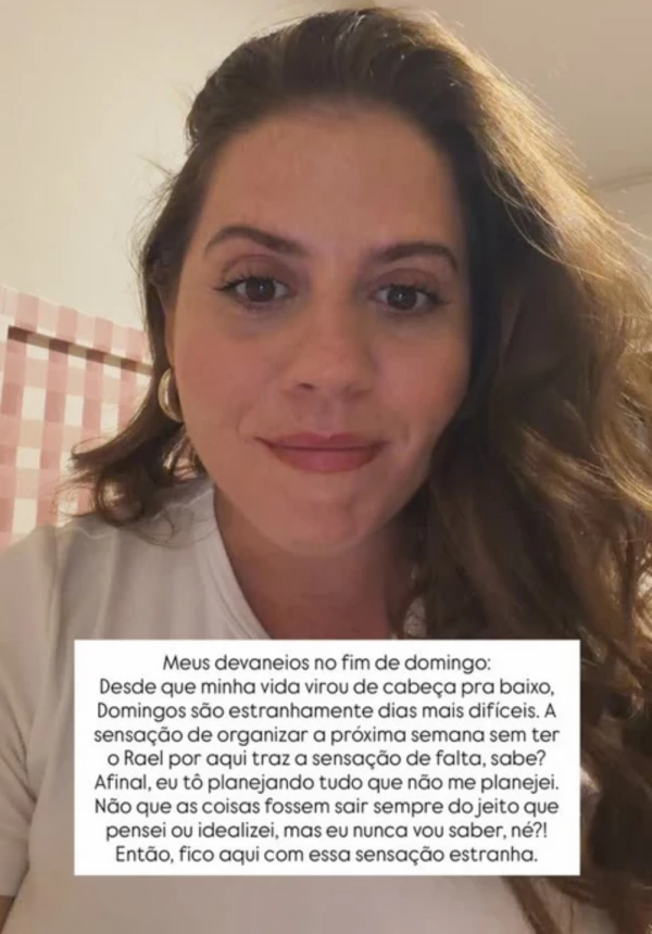 Em seus Stories no Instagram, Tati mencionou como a necessidade de planejar os dias seguintes traz à tona a falta que sente. Ela destacou que a organização da nova realidade sem o filho é um processo complexo.