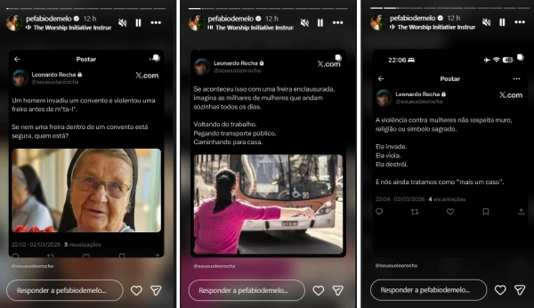 “A violência contra mulheres não respeita muro, religião ou símbolo sagrado. Ela invade. Ela viola. Ela destrói. E nós ainda tratamos como ‘mais um caso'”, compartilhou o religioso em suas redes sociais, demonstrando indignação com a morte da irmã.