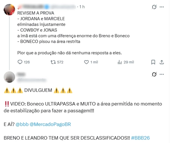 Nas redes sociais, internautas começaram a apontar um possível momento em que Leandro Boneco teria ultrapassado o limite permitido da área durante a execução da prova. O assunto rapidamente ganhou repercussão entre os fãs do reality show, que passaram a cobrar um posicionamento da produção do programa sobre o ocorrido.