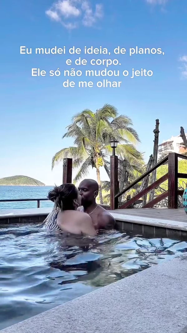 Em uma das mídias publicadas, na qual aparece beijando Israel dentro de uma piscina, a influenciadora resumiu a parceria do casal frente às suas mudanças. “Eu mudei de ideia, de planos e de corpo. Ele só não mudou o jeito de me olhar”, escreveu Thais, celebrando a constância do afeto e a presença do fotógrafo em meio às suas mudanças.
