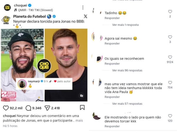 A repercussão diante do comentário de Neymar foi imediata. “Os iguais se reconhecem“, escreveu um internauta. “Ele mostrou o lado para quem não devemos torcer”, disse outro. “Tadinho”, comentou um terceiro. A publicação do jogador no perfil do participante do BBB26 segue dando o que falar nas redes sociais entre os fãs do reality show da Globo.