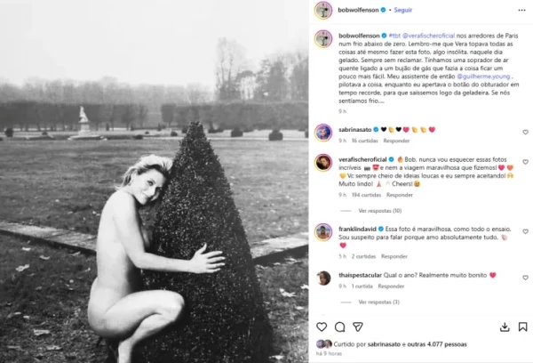 A atriz prontamente respondeu à publicação na plataforma digital, demonstrando apreço pelo projeto e pelo fotógrafo. Em seu comentário, ela validou a narrativa sobre a criatividade envolvida no processo e a parceria estabelecida entre eles durante a estadia na França. Vera escreveu diretamente na postagem: “Bob, nunca vou esquecer essas fotos incríveis e nem a viagem maravilhosa que fizemos!“.