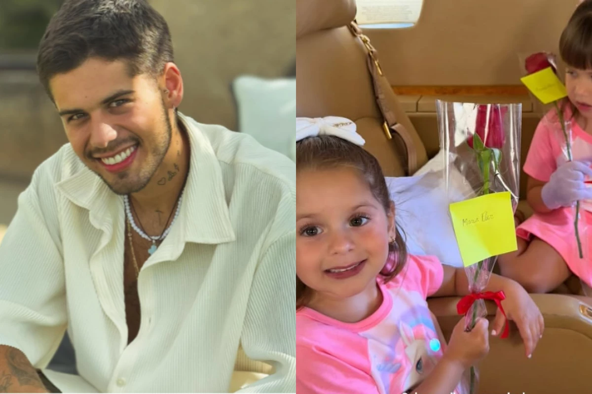 Na foto, aparecem as duas filhas mais velhas do ex-casal, Maria Alice e Maria Flor, segurando rosas vermelhas. “O papai emprestou o avião pra gente e mandou flores”, escreveu Virginia, destacando o gesto generoso do cantor.