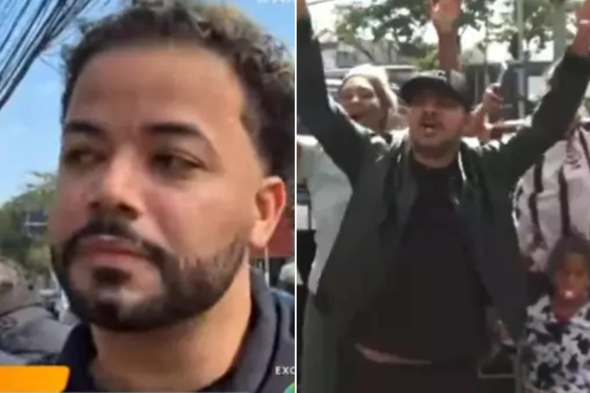 Um grupo de apoiadores do influenciador se reuniu em frente a delegacia onde ele e o marido foram presos preventivamente.