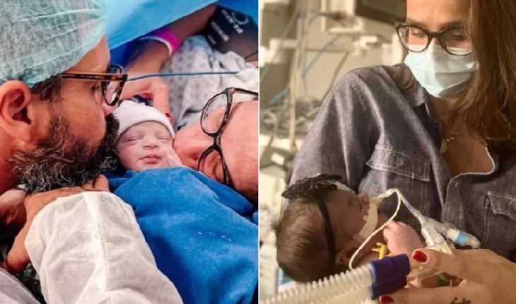 Sambista posou ao lado da esposa Mônica e comemorou a chegada de Domênico.