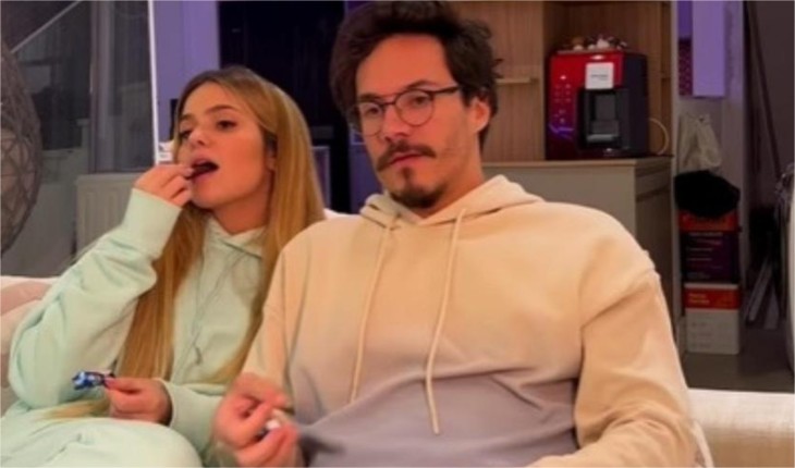 Nas imagens, o youtuber aparece falando no ouvido da jovem e dando um beijo nela.