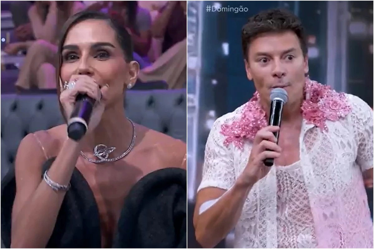 Vera Viel surpreendeu o marido e apareceu na gravação do talent show exibido no Domingão com Huck.